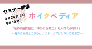 【セミナー告知:9月24日(土)午前10時】高校生、現役保育学生必見!今から知っておきたい海外就職